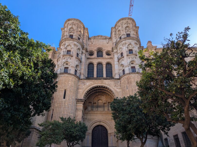 De kathedraal van Malaga is zo één van de plekken waar alle wegen naar lijken te leiden. Het is een enorme kerk met een gotisch fundament, de spitsbogen binnenin geven dat weg, en daarnaast renaissance en vooral barokke elementen. De kerk is gebouwd op de plek van de vroegere moskee, dus na de katholieke herovering aan het einde van de middeleeuwen. Dat is al laat om zo’n bouw te starten en het heeft dan nog eens 200 jaar geduurd om het af te werken, wat de mengelmoes van stijlen verklaart.