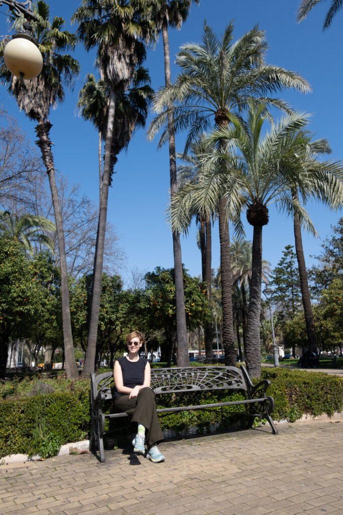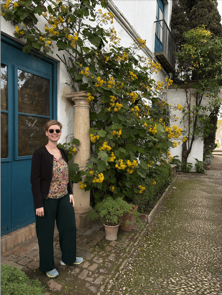 Links: in de botanische tuin in Lissabon (ik heb te weinig foto’s van mezelf laten nemen op deze camerarol). Rechts: bell tower van de Mezquita in Cordoba.